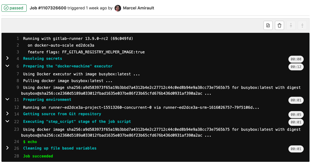 - echo -e "\e[0Ksection_end:`date +%s`:my_first_section\r\e[0K"