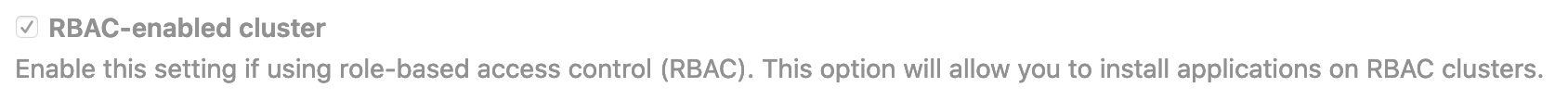 GitLab-managed cluster - Leave this checked if you want GitLab to manage namespaces and service accounts for this cluster. See the Managed clusters section for more information.