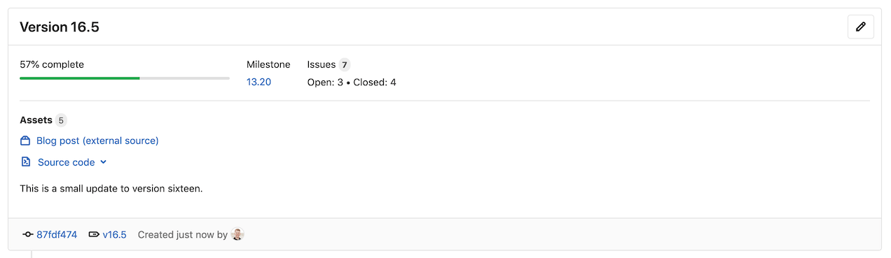 2. In the upper-right corner of the release you want to modify, select Edit this release (the pencil icon).