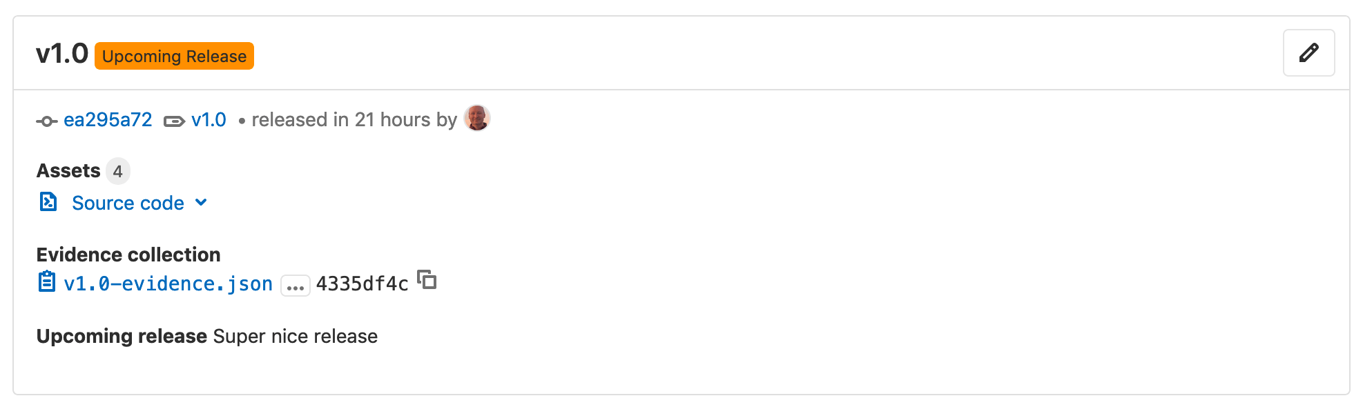 • GitLab automatically creates a JSON file that lists everything in the release, so you can compare and audit releases. This file is called release evidence.
